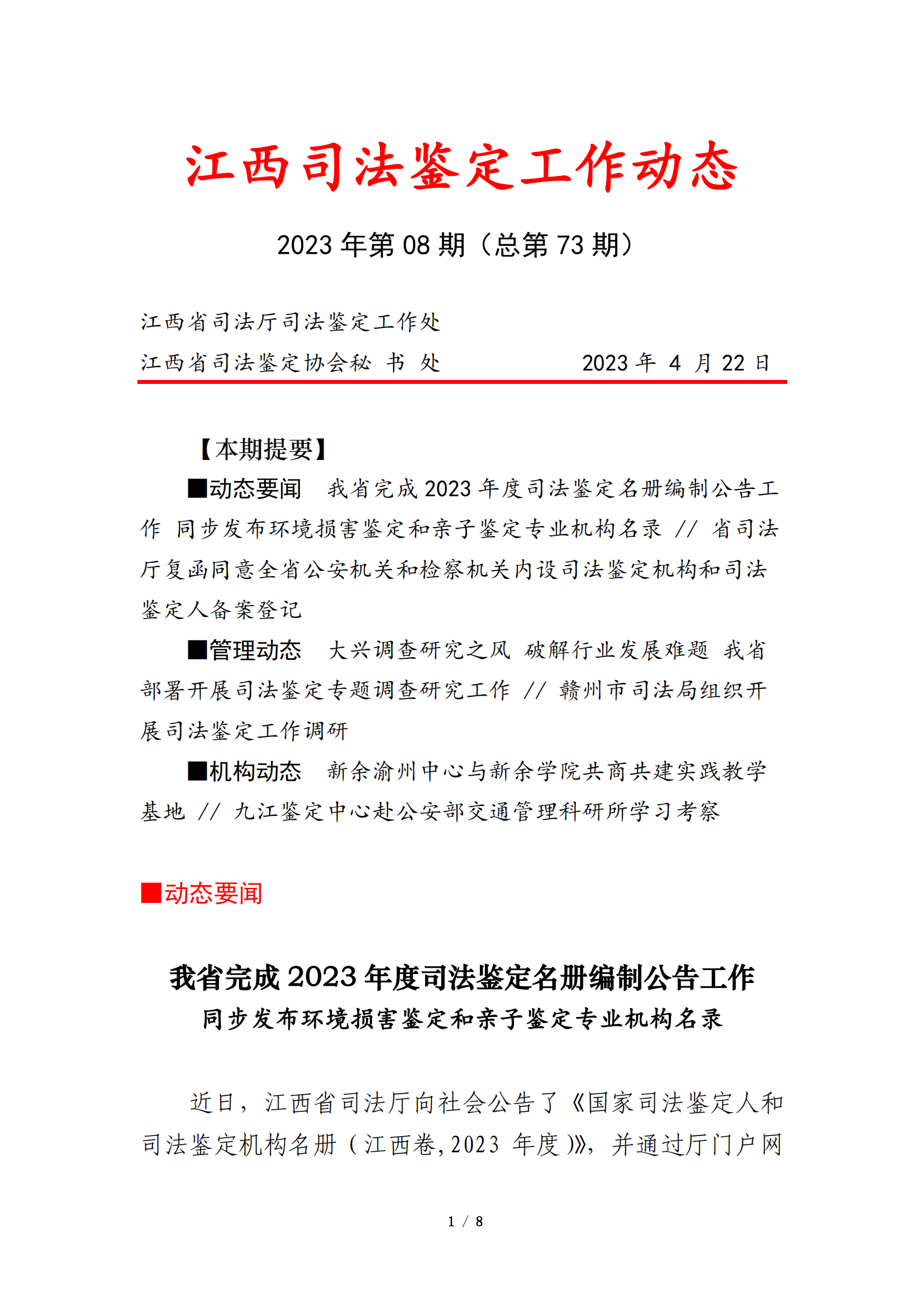江西司法鉴定工作动态2023 年第 08期(总第 73期)